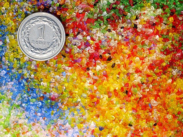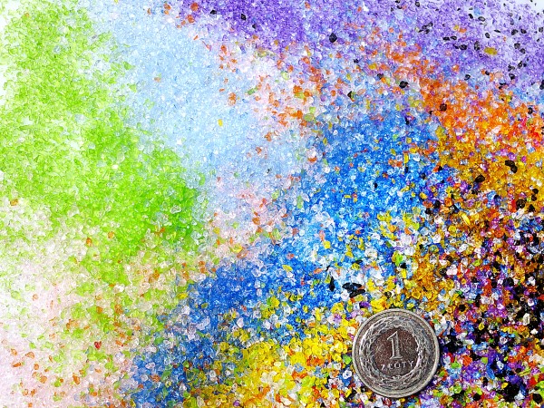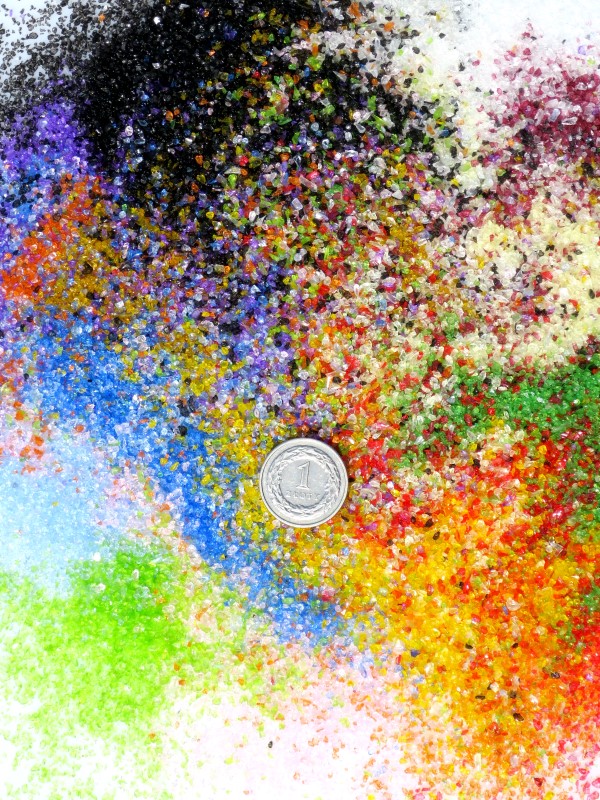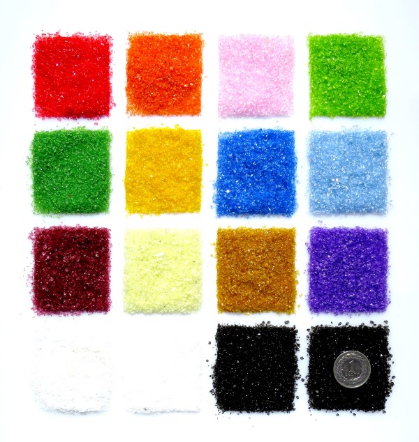 Oferujemy piasek szklany barwiony w granulacji fi 0,1-2mm. Barwiony piasek odporny na czynniki zewnętrzne, wodę, słońce,uv.
